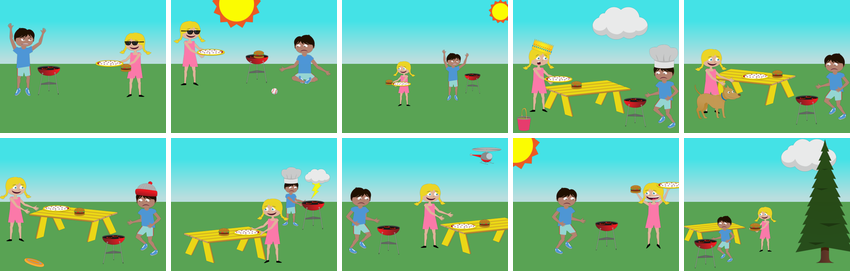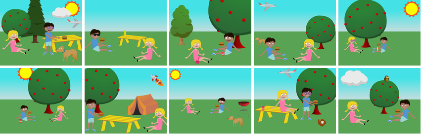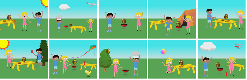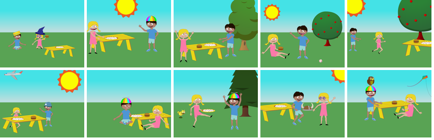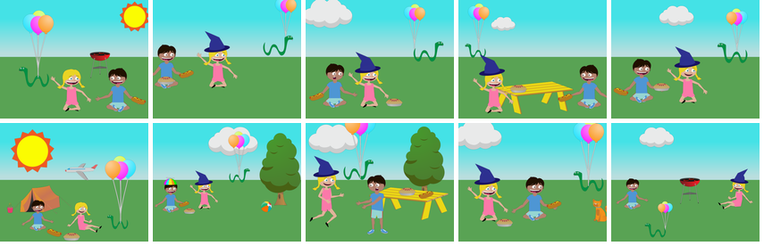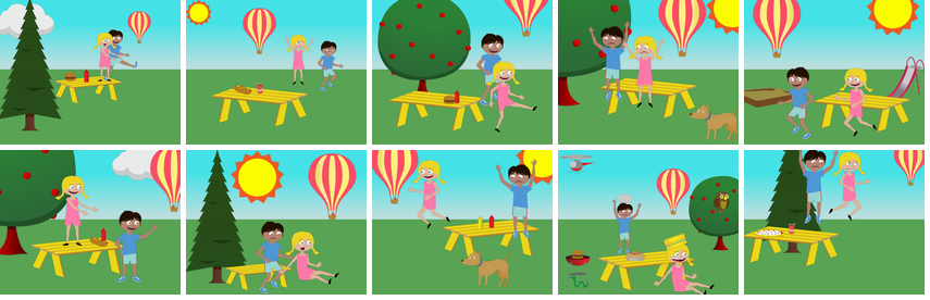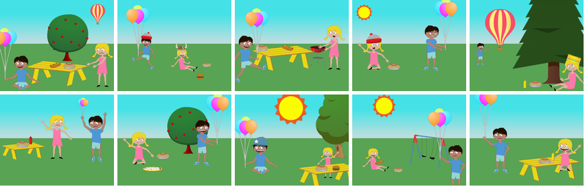 105. Jenny tries to have a picnic but Mike just wants to play with his balloons.