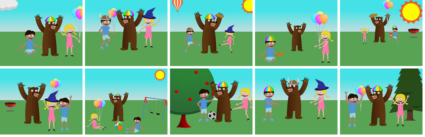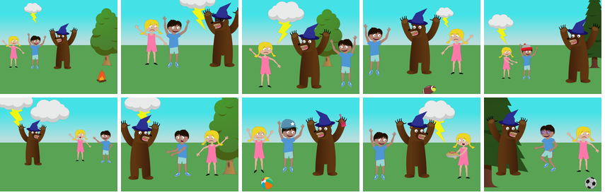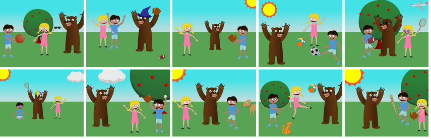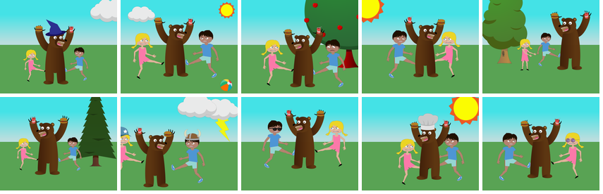 79. Now that they are friends with the bear Mike and Jenny ask him to play.
