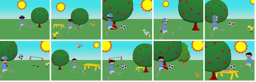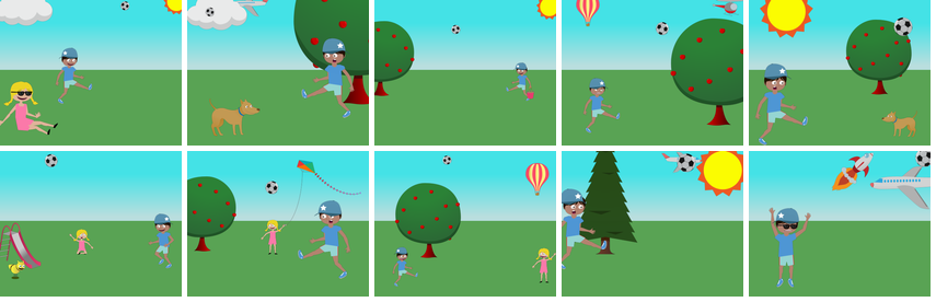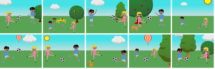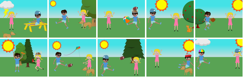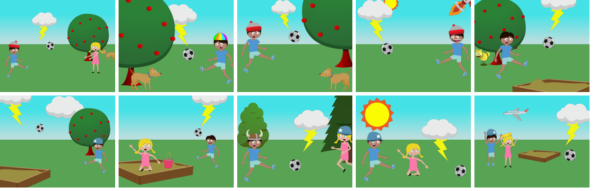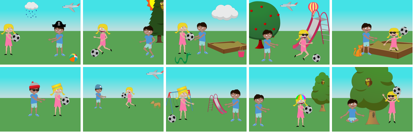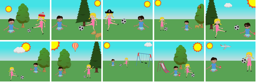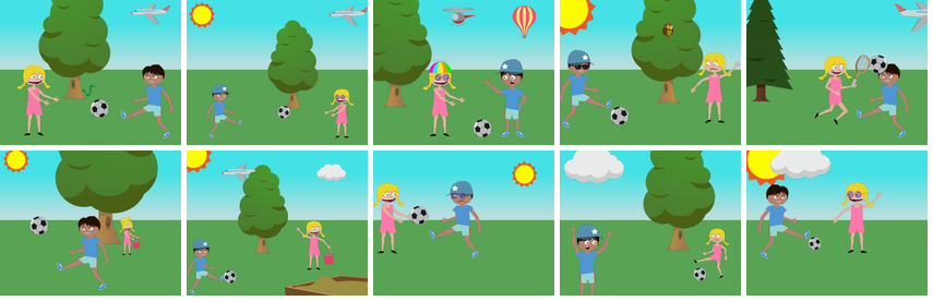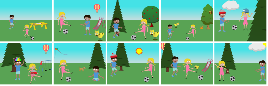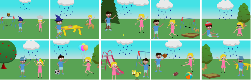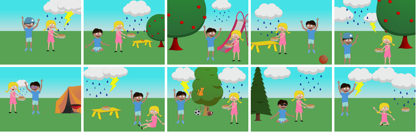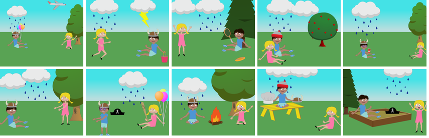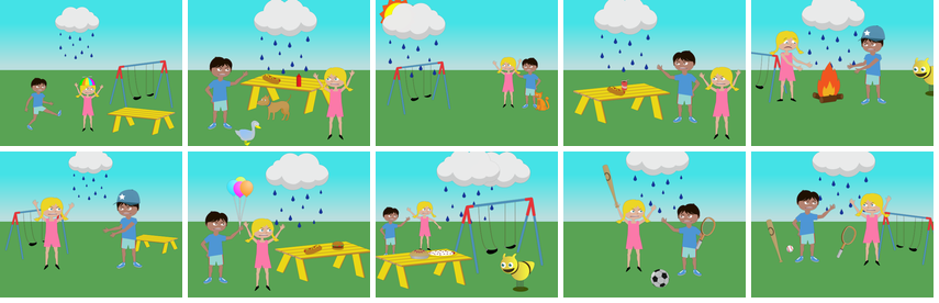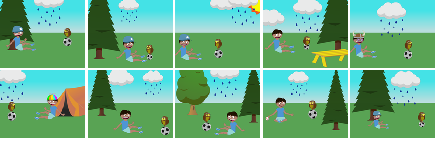 176. Mike and Jenny are happily practicing their soccer kicks. They do not know that it is starting to rain!
