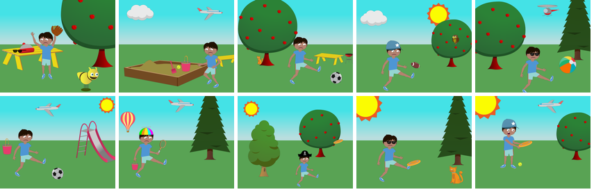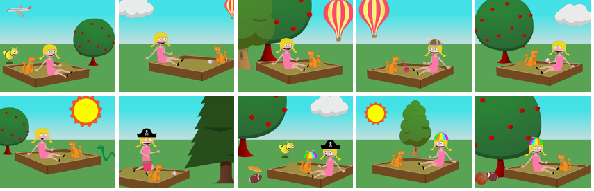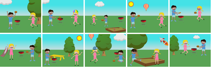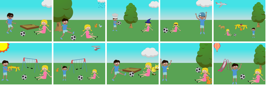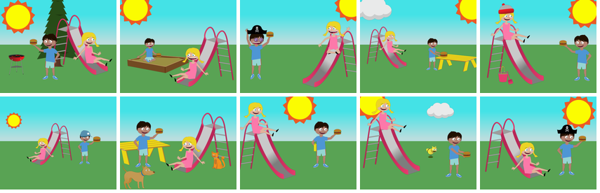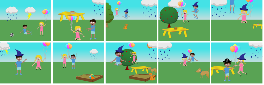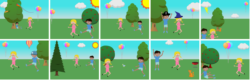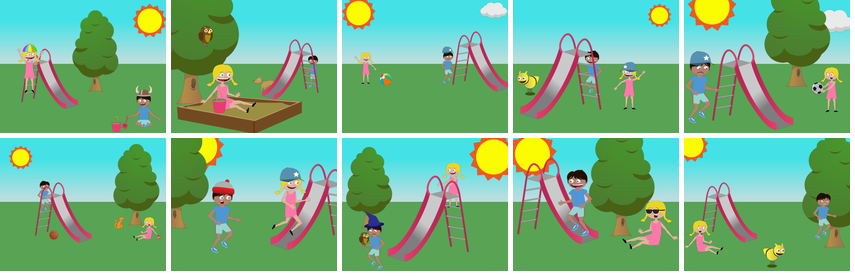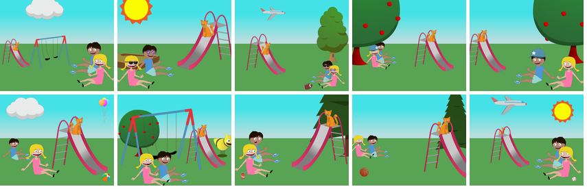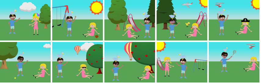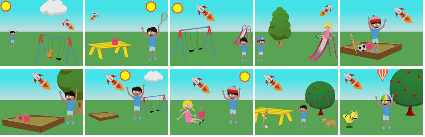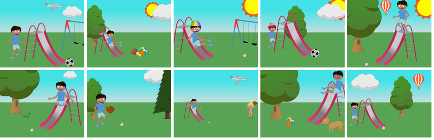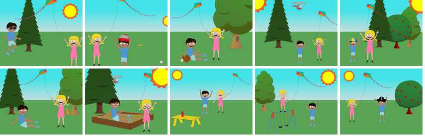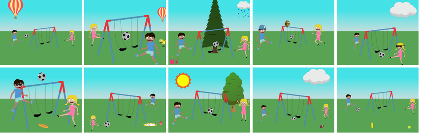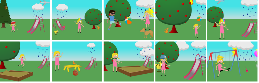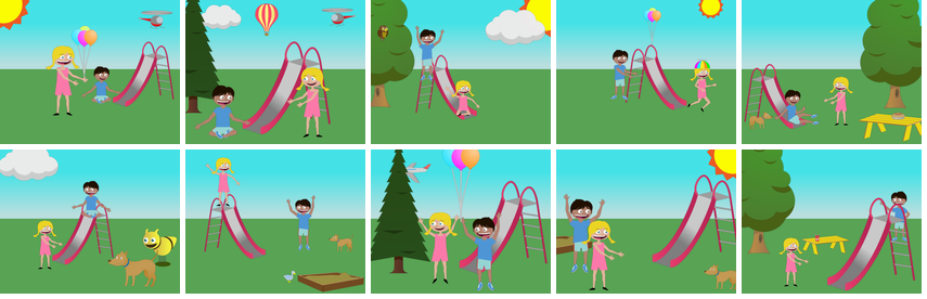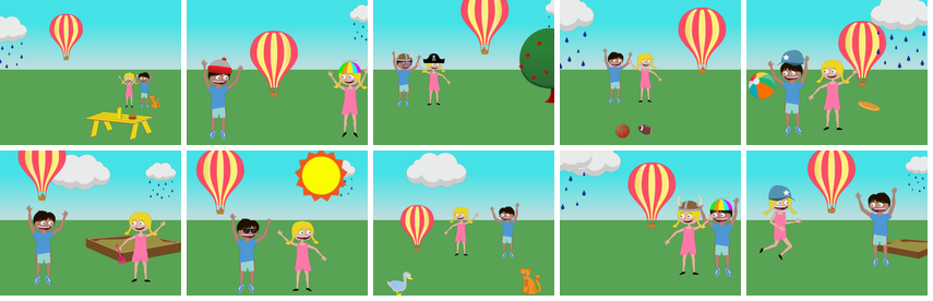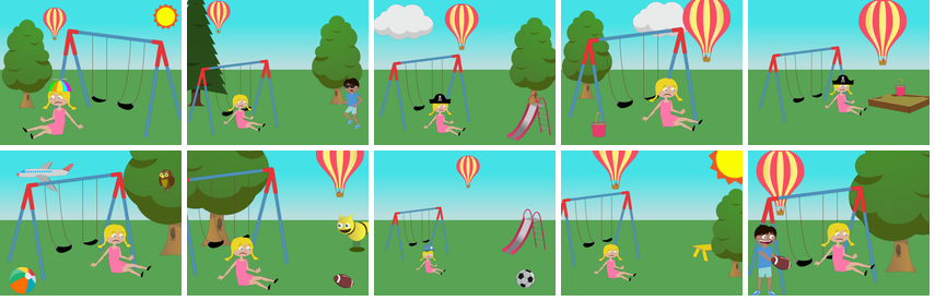 90. Jenny fell off of the swing in the park while a hot air ballon was overhead.