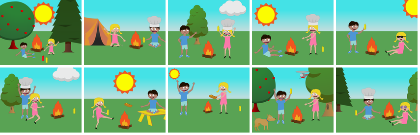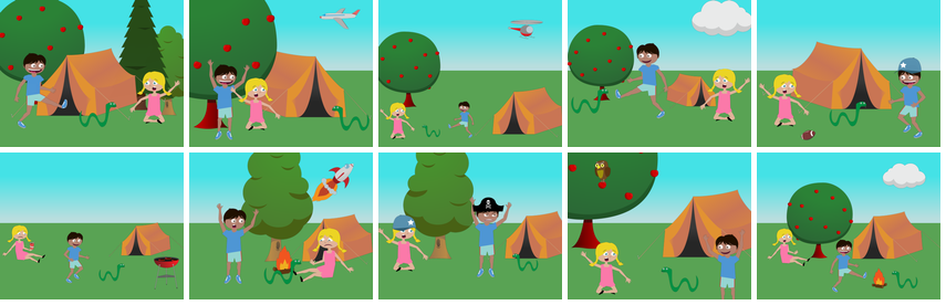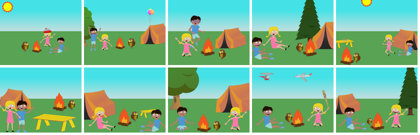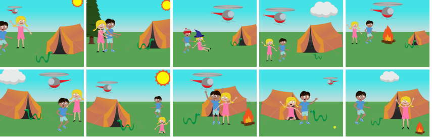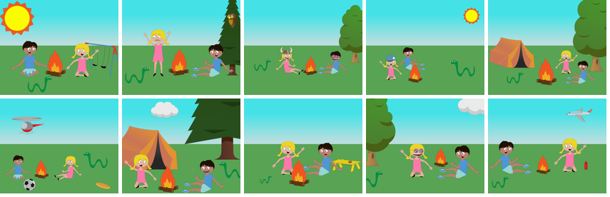 118. Jenny and Mike were so happy about their campfire they didn't notice the snake going by.