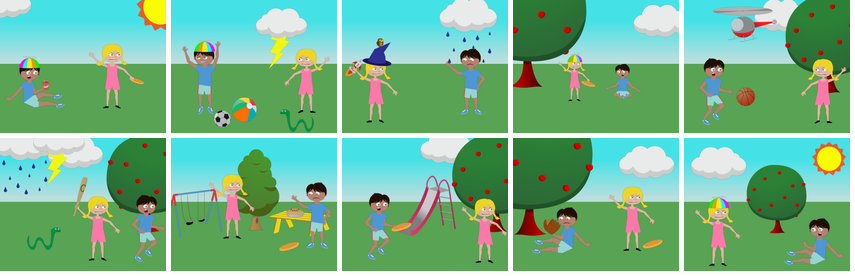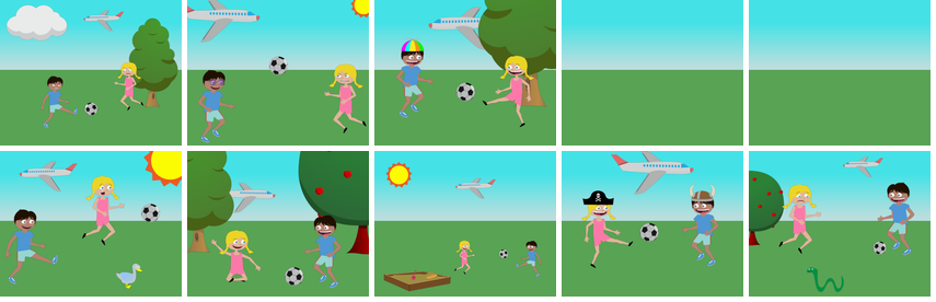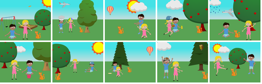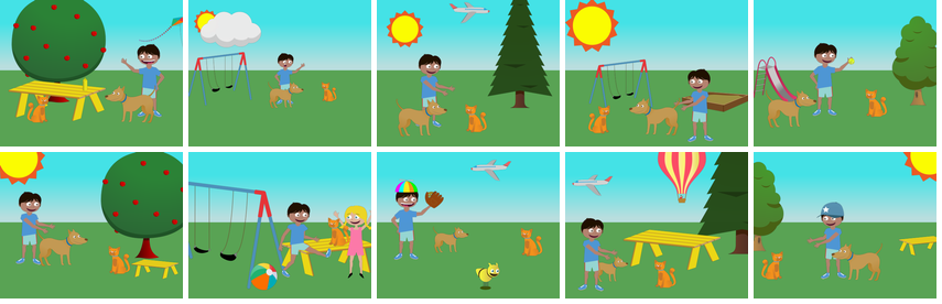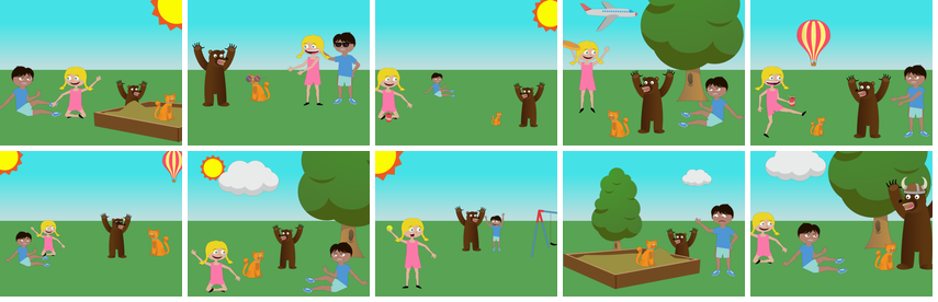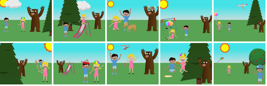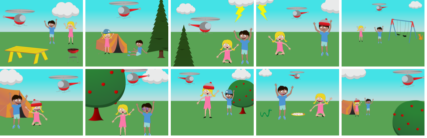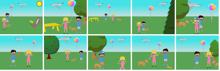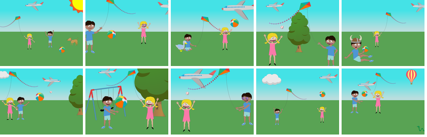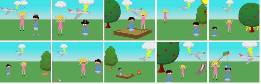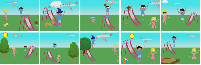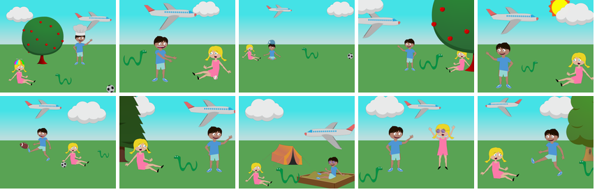 199. Mike jumped off the slide and tried to catch the plane. Jenny tried to tell him it wouldn't work.