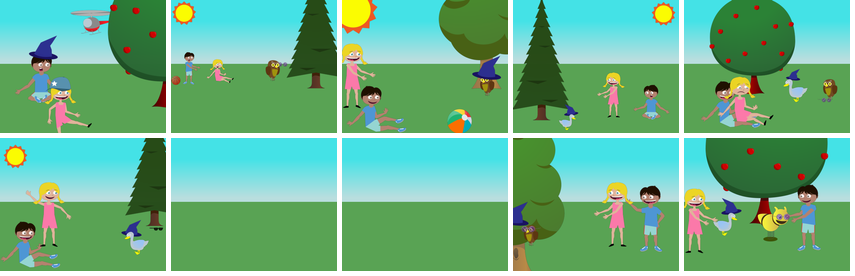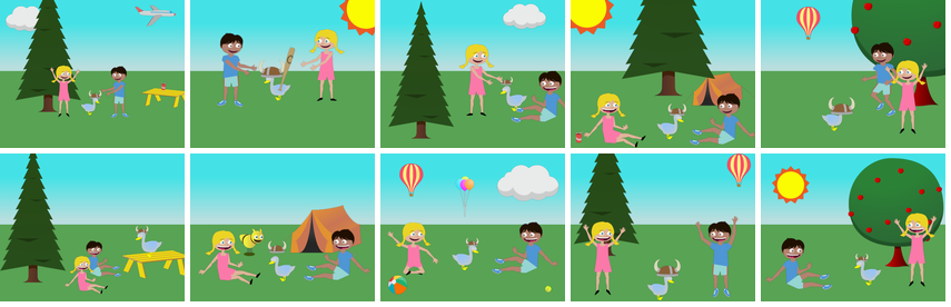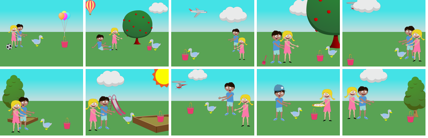 37. Mike and Jenny urge the duck to fetch the bucket for them.