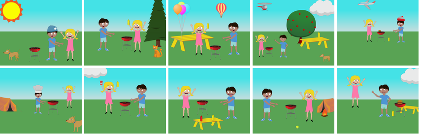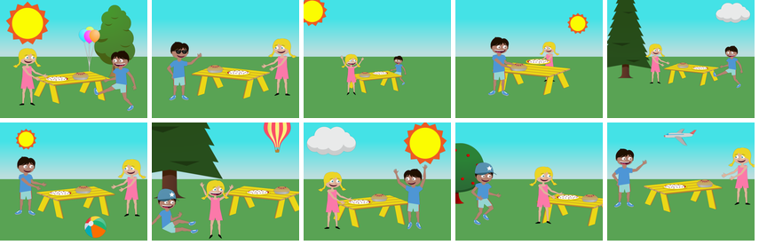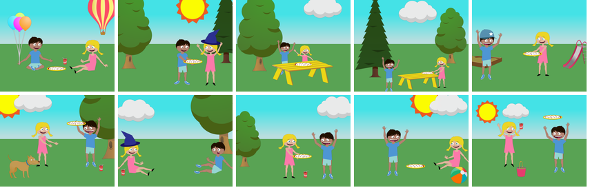 131. Mike and Jenny are happy to have a pizza party at the park!