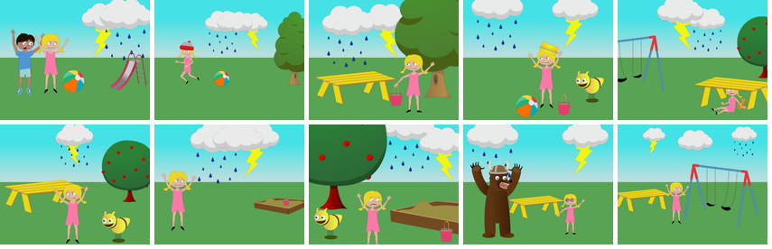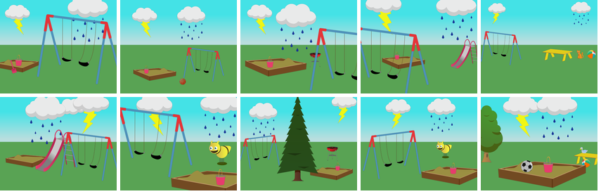 19. Nobody is playing at the park because a thunder storm started and rain came pouring down.