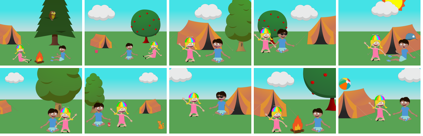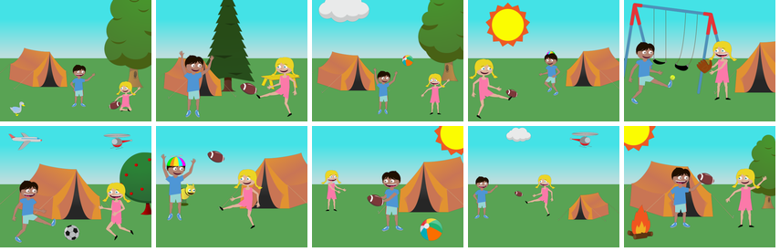 84. Mike and Jenny are having so much fun playing ball while camping out at the park!