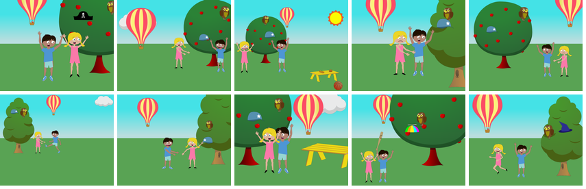 185. Mike and Jenny are trying to retrieve a hat out of a tree inhabited by an owl as a hot air balloon strolls by.
