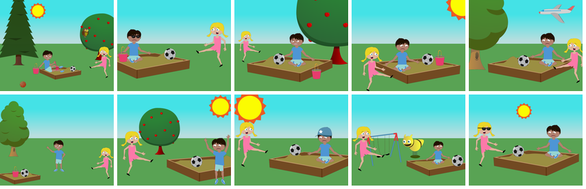 141. Mike tries to get Jenny to slide down the slide into the sandbox.